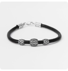 Кожаный браслет c тремя славянскими шармами (4мм)