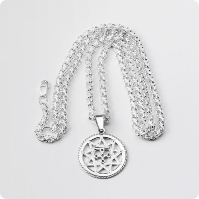 Цепь из серебра с воздушным плетением Москвичка выглядит красиво как сама по себе, так и в комбинации с оберегом из серебра. Выбирая медальон под эту цепь, обратите внимание на средние и большие амулеты из серебра без чернения, такие варианты лучше всего сочетаются с такой изысканной цепью.