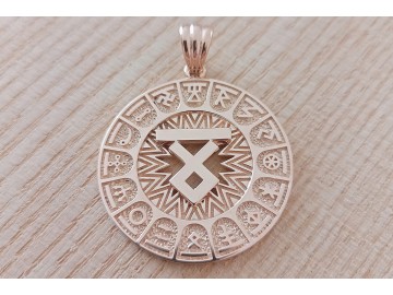 Двухсторонний оберег Алатырь-Коловрат с Солнцем из золота